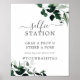 This emerald greenery selfie station wedding hashtag sign is perfect for a boho wedding. The elegant yet rustic design features moody dark green watercolor leaves and eucalyptus with a modern bohemian woodland feel. The sign reads "grab a prop and strike a pose tag please tag your photos with: your hashtag".