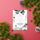 This emerald greenery silver foil all in one wedding invitation is perfect for a boho wedding. The elegant yet rustic design features moody dark green watercolor leaves and eucalyptus with a modern bohemian woodland feel. Featuring luxurious silver foil text on the front. Save paper by including the details on the back of the wedding invitation instead of on a separate enclosure card. Include the RSVP info as well if your guest will be replying electronically (optional).