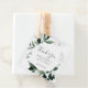 These emerald greenery thank you favour tags are perfect for a boho wedding. The elegant yet rustic design features moody dark green watercolor leaves and eucalyptus with a modern bohemian woodland feel. Customise these tags with your names and date. Change the wording to suit any event.