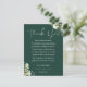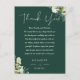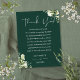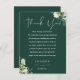 An elegant emerald green floral greenery wedding celebration thank you reception card. Personalized with your special thank you message set in stylish typography. A special keepsake thank you to your guests. Designed by Thisisnotme©