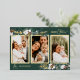Welcome to our enchanting Emerald Greenery Vintage Five Photo Collage Foil Holiday Card design, where vintage charm meets modern elegance. This design features intricate watercolor greenery and subtly elegant calligraphy with simple typography, capturing the essence of traditional cosiness and rustic cottage core. With a touch of retro flair and a dash of farmhouse comfort, our design exudes a sense of timeless sophistication. Whether you prefer a modern boho aesthetic, whimsical forest motifs, or the colourful allure of jewel tones, our collection offers something for everyone. Embrace the spirit of winter with emerald green, pine, spruce, and pristine white hues that evoke the serenity of the season. Explore the magic of Christmas with this versatile and captivating design, perfect for sending warm holiday greetings or adding a touch of yule to your festivities. As with all of our collections, if you have any questions or would like to request a coordinating product be made especially for you, please just ask.