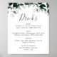 Emerald Greenery Wedding Drinks Menu Sign