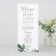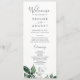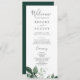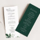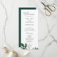 This emerald greenery wedding program is perfect for a boho wedding. The elegant yet rustic design features moody dark green watercolor leaves and eucalyptus with a modern bohemian woodland feel. Include the name of the bride and groom, the wedding date and location, thank you message, order of service, bridal party and an optional "in loving memory" memorial.