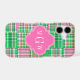 Emerald Hot Pink Preppy Patchwork Madras Monogram