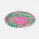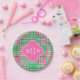 Emerald Hot Pink Preppy Patchwork Madras Monogram Paper Plate
