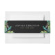 A striking wedding layout featuring a vivid emerald hummingbird perched among lush tropical leaves, all set against a dramatic black background with elegant green and white text. Perfect for exotic, destination, or outdoor celebrations.