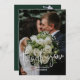 Express your gratitude and thank your guests for their presence and beautiful gifts with this customisable photo card with a modern elegant silver and emerald green Thank You card that matches your wedding theme. Just add your favourite wedding pictures, and write your own thank you message.
