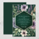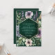 Immerse your special day in an enchanting atmosphere with this moody botanical design. A deep emerald green background sets the stage for a delicate watercolor arrangement of lavender, purple anemones, and soft white blossoms. Lush sage green foliage and wispy grasses add texture, creating a look of romantic, wildflower elegance.