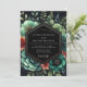 Experience a dramatic and lush botanical aesthetic, featuring deep emerald and teal succulents and foliage. These vibrant greens are highlighted by brilliant bursts of orange and red blossoms. This moody and elegant design evokes a sense of romance against a dark, dramatic backdrop, perfect for a sophisticated affair.