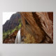One of the famous sights of Zion National Park is the series of Emerald Pools. This picture shows the waterfall which flows from the Middle Emerald Pool into the lower one from almost underneath the falls. The pale green of spring leaves on the trees contrasts nicely with the shades of red and orange in the rocks. This photo is also featured as the widescreen wallpaper "Emerald Pool Falls III" from MLeWallpapers.com. Check out our store for more photos from Zion National Park and other US National Parks.