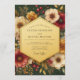Evoke a sense of opulent romance with this stunning botanical design. A deep emerald green background provides a dramatic canvas for a lush arrangement of florals. Creamy peonies, golden yellow roses, and rich crimson anemones bloom alongside vibrant red berries and delicate greenery. This moody and elegant composition is perfect for an autumn or winter union.