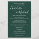 Elegant demerald green signature script wedding weekend program featuring signature style names. Personalise with your wedding weekend details set in chic white lettering. Designed by Thisisnotme©