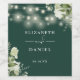 Elegant string lights greenery floral emerald green wedding design personalised with your names and special wedding date. Designed by Thisisnotme©