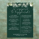 This elegant emerald green wedding itinerary sign, featuring pretty string lights and floral greenery, can be personalised with your information in chic typography. Designed by Thisisnotme©