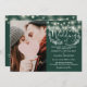 An emerald green wedding invitation featuring pretty string lights and a delicate hand-drawn rustic floral garland of botanical leaf foliage with stylish script typography. Personalise with all your special wedding day information on the reverse including your RSVP, accommodation, and additional details. Designed by Thisisnotme©
