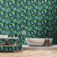 A seamless preppy pattern featuring shades of green and blue floral elements set against a black background. The design combines vibrant foliage with a dark backdrop to create a striking and elegant visual effect.