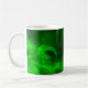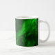 Abstract emerald-green smoke swirls over a dark backdrop—wraparound ceramic mug with a sleek, modern, high-contrast look.