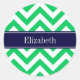 Emerald Green and White Large Chevron Zig Zag Pattern,Navy Blue Ribbon Name Monogram Label
