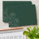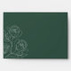 A minimalist, modern and elegant emerald green wedding envelope featuring elegant one-line drawn white Roses against a deep emerald green background. The inside of the envelope features your names and the same white roses imagery. An elegant and lively handwritten calligraphy font set states your names and return address on the back flap.