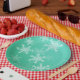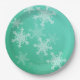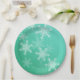 Emerald White Snowflakes Minimalist Christmas Name Paper Plate