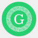 Emerald Wht Greek Key Rnd Frame Initial Monogram Classic Round Sticker