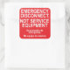 A sheet of six, 3" x 3" EMERGENCY DISCONNECT, NOT SERVICE EQUIPMENT sticker labels with Spanish subtitles for electricians to label new electrical services. Desconexión de emergencia, no equipo de servicio