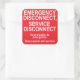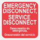 A sheet of six, 3" x 3" EMERGENCY DISCONNECT, SERVICE DISCONNECT sticker labels with Spanish subtitles. Desconexión de emergencia, desconexión del servicio.