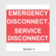 An EMERGENCY DISCONNECT, SERVICE DISCONNECT sticker label for electricians to use to satisfy the requirements of Article 230.85(E)(1) and (2) in the 2023 National Electrical Code.