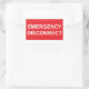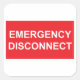 A sheet of EMERGENCY DISCONNECT sticker labels for electricians to use to satisfy the requirements of Article 230.85(E)(1) and (2) in the 2023 National Electrical Code.