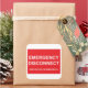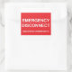 An EMERGENCY DISCONNECT sticker label with a Spanish subtitle. Desconexión de emergencia.