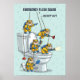 Add a hilarious twist to your bathroom with this “Emergency Flush Squad” poster featuring tiny hamsters in bright yellow hazmat suits rappelling down your toilet like a SWAT team, armed with plungers, scrub brushes, and toilet paper. This funny bathroom wall art captures the chaos and humour of toilet time with a bold, clean cartoon style, perfect for guest bathrooms, powder rooms, or as a quirky gift. The action-movie parody feel with dynamic lighting makes it scroll-stopping, adding personality and laughter to your bathroom decor.