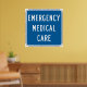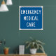 Bring important safety aid and awareness to any room with this high-quality poster featuring the Emergency Medical Care graphic. Perfect for display in a hospital facility, first responder station, classroom, or medical response training area. This poster displays the clear directional symbol in a high-attention format. The blue health care design ensures maximum visibility, making it powerful signage for safety information. This is a crucial, helpful graphic piece for promoting awareness, much larger and more visible than an emergency sticker. Available in multiple sizes to fit your space.