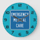 Keep track of time while promoting safety aid and medical response with this custom clock featuring the Emergency Medical Care graphic. Ideal for waiting rooms, hospital facility offices, or first responder stations, this clock displays the clear directional symbol. The design is a constant, helpful graphic reminder of the importance of prompt care. The blue health care theme adds a professional, high-attention touch to any room. It is a piece of functional signage that is much more useful than a simple emergency sticker.
