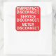 A sheet of six, 3" x 3" EMERGENCY DISCONNECT, SERVICE DISCONNECT, METER DISCONNECT sticker labels for electricians to use when identifying electric service equipment.