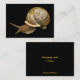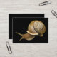 This artist trading card features a garden snail emerging from his shell on a pure black background. He is a terrestrial gastropod mollusk with a brown and beige shell in the classic spiral pattern. His tentacles each have an eye at the end and are pointing ahead as he figures out where to go, pushed along by his strong muscular foot.