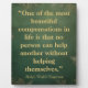 Beautiful tabletop plaque features “One of the most beautiful compensations in life is that no person can help another without helping themselves.” inspirational quote by Ralph Waldo Emerson on vintage green and gold background.