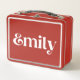 Crafted from high-quality metal, this lunchbox is built to last while offering plenty of space to hold sandwiches, snacks, drinks, and even sweet treats. The sleek yet playful design stands out thanks to the bright white lettering of the name Emily, offering a cheerful vibe that’s as modern as it is timeless. The vibrant contrast makes this lunch pail easy to spot in a sea of school bags or break room shelves, while the sturdy latch ensures all your goodies stay safe and secure until it's time to eat. Whether it's nestled in a backpack or carried by hand, this lunchbox is the perfect companion for busy days filled with classes, meetings, or adventures.