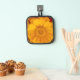 I ordered this product for my Mom as a gift and to check the product quality. It is a good thickness and great quality I am happy to report. She also advised that it will do a wonderful job in protecting her counters from hot pots and will last a really long time- durable. Printing is as expected and color is exactly her color of orange.