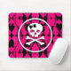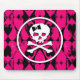 This Emo Mouse Pad features a pink & black love heart pattern & white skull & bones graphic.