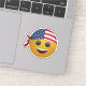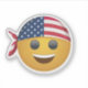 This sticker design features a cheerful yellow emoji face with a big, friendly smile. The emoji is wearing a stylish American flag bandanna, with the stars and stripes vividly displayed, tied around its head in a cool way. The bandanna’s vibrant red, white, and blue colours contrast nicely with the bright yellow of the emoji, creating a fun and patriotic vibe. Perfect for expressing both positivity and national pride, this sticker is a great accessory for laptops, water bottles, or notebooks.