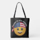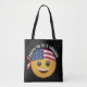 Carry your essentials with a smile. Our "Happy to Tote Around" tote bag features a cheerful smiling emoji rocking a stylish American flag bandanna. Perfect for casual outings, trips to the market, or patriotic events, this tote is not only fun but practical too. Get ready to tote around in style.