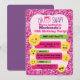 Perfect for ANY AGE but great for tween or teen girls. Emoji invitation features all her favourites: winking, smiling, heart, sunglasses on a pink glitter border with pink and purple elements. All the text in the speech bubbles can be customised with your text. Great for any age girl birthday party!