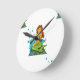 The clock did not take as long to arrive as I thought it might and was extremely well packaged. I didn't do the measurements so I didn't realize it is a little smaller than the average clock but that does not matter (just make sure you check if that's important to you).It is really nifty! It seems very solid and well made not flimsy at all. It has been going well and has kept good time in its few weeks on my wall. Nice product. Gets noticed too! Nicer in real life than the picture but true to the picture