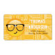 This fun label features a designer original emoji called 'Totally Techie' wearing (what else?) taped together black glasses and a kinda shy but adorable smile. Background is a subtle, circuit board pattern in golden yellow and white. Search ID229 to see other products with this design.
