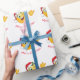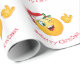 Christmas wrapping paper is shown with a white background colour with a cute santa emoji print.