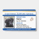 Easy to adjust emotional support animal id name badge with red and white background. All text is adjustable. If the fast template adjustment does not work for your photo, click on the customise further option to be able to delete and add your photo to the card. One photo option. If lost text space provided on back of this Photo ID. If number not needed, just delete that text.