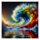 This cinematic wall art captures a massive wave of emotions crashing over a calm sea, with the wave represented as a swirling vortex of bright colours—red, orange, yellow, green, blue, indigo, and violet. The calm sea in the foreground contrasts with the powerful, colourful wave, symbolising the intensity of emotions alongside inner peace. The artwork beautifully blends nature with abstract elements, offering a dramatic and vibrant visual that evokes both power and tranquillity.