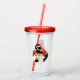 Tumbler with an illustration of a cute emperor penguin with a red Santa hat; Christmas holiday cartoon design for kids, editable template design with custom field for your own text, illustrated by Radka Kavalcova