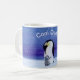 A watercolor painting of a father Emperor Penguin and his chick are depicted on this Cool Dad mug!
