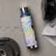 The bottle looks even better in real life. The ice cubes I put in lasts all day! I have my bottle with me all the time. It's summer and having something cold to drink feels amazing. With this bottle I always have something super cold. I have only tried the hot drink once and it lasted a long time as well. The color blue is a navy blue and the white printed on it is vibrant. It printed perfectly. I love my personalized smile water bottle.